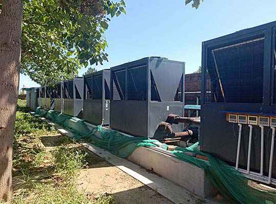 工程概況規(guī)模:河北定州養(yǎng)殖場(chǎng)供暖工程,采用多臺(tái)熱泵機(jī)組保持養(yǎng)殖場(chǎng)室內(nèi)溫度。